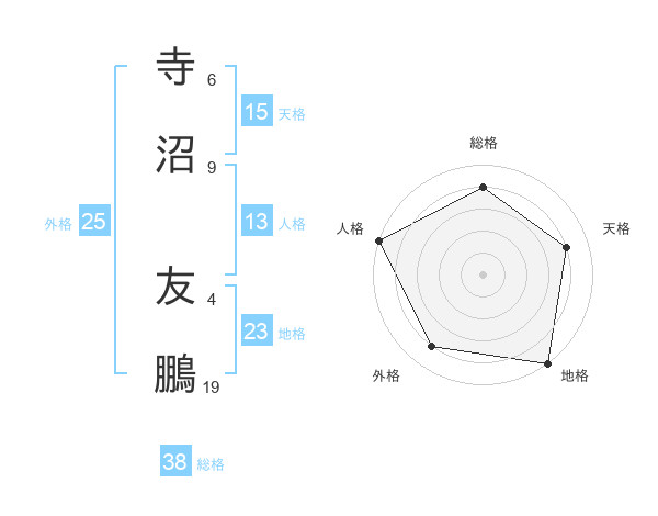 寺沼 友鵬さんの総格は38画の4点!