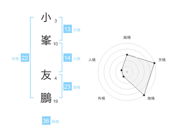 小峯 友鵬さんの天格は13画の5点!