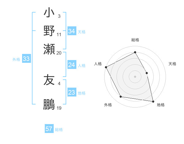 小野瀬 友鵬さんを姓名の画数から五運を鑑定