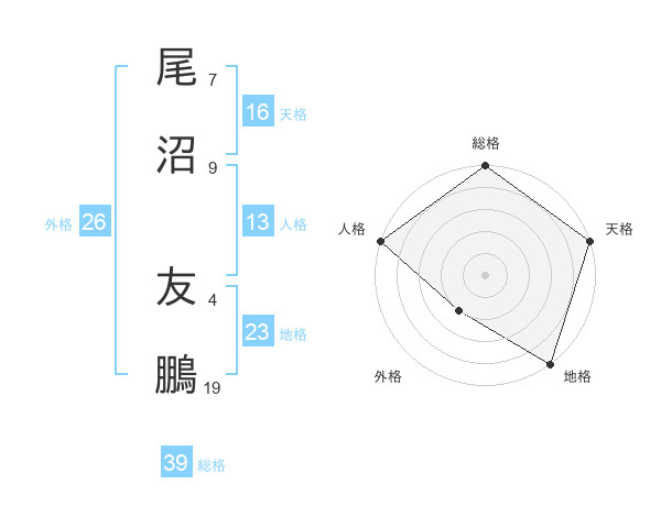尾沼 友鵬さんの総格は39画の5点!