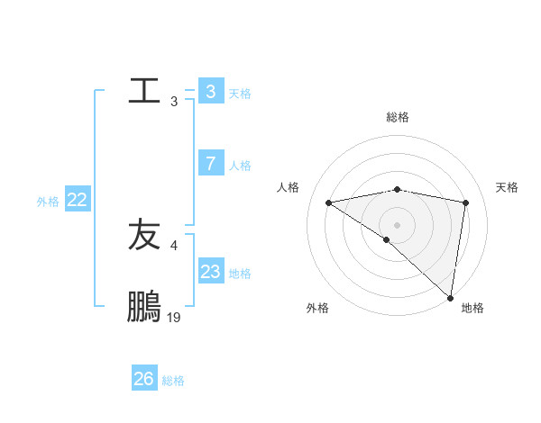 工 友鵬さんの総格は26画の2点!