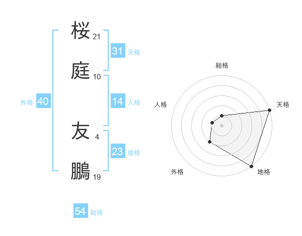 桜庭 友鵬さんを姓名の画数から五運を鑑定