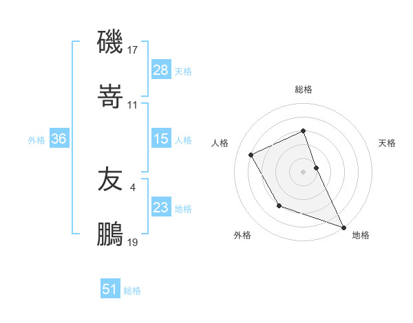 磯嵜 友鵬さんの総格は51画の3点!