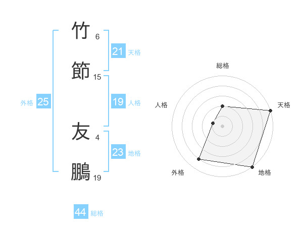 竹節 友鵬さんの総格は44画の2点!