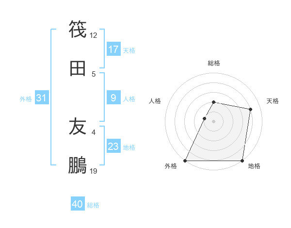 筏田 友鵬さんを姓名の画数から五運を鑑定