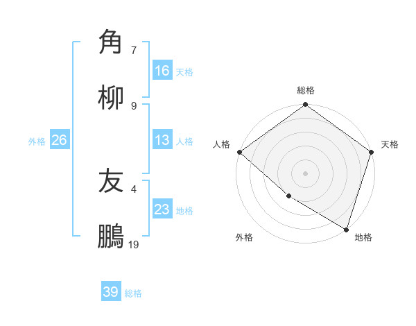 角柳 友鵬さんを姓名の画数から五運を鑑定