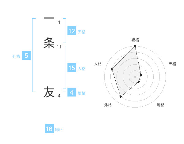 一条 友さんの総格は16画の5点!