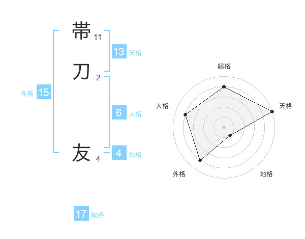 帯刀 友さんの総格は17画の4点!