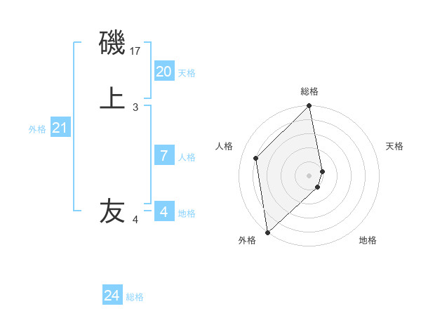磯上 友さんの外格は21画の5点!