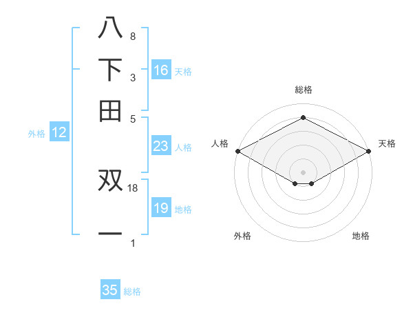 八下田 双一さんの総格は35画の4点!