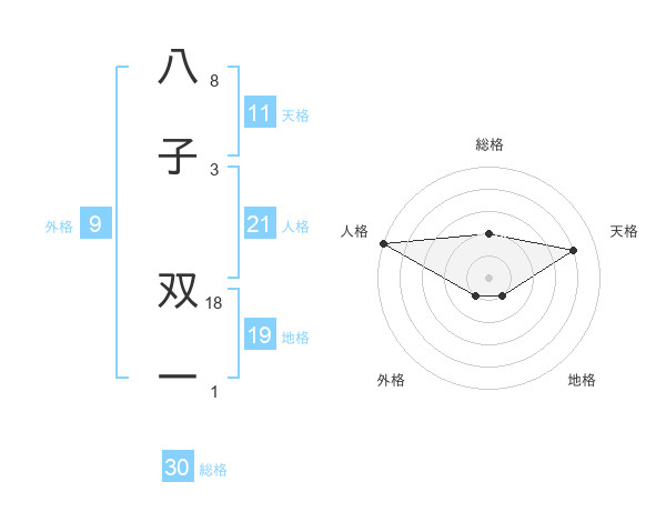 八子 双一さんの総格は30画の2点!