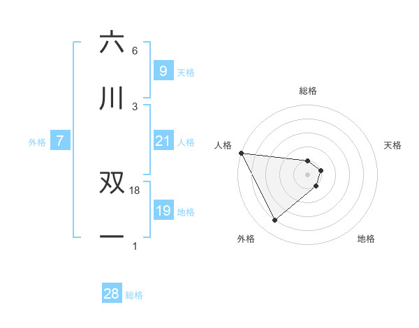 六川 双一さんの総格は28画の1点!