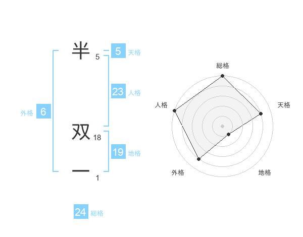 半 双一さんの総格は24画の5点!