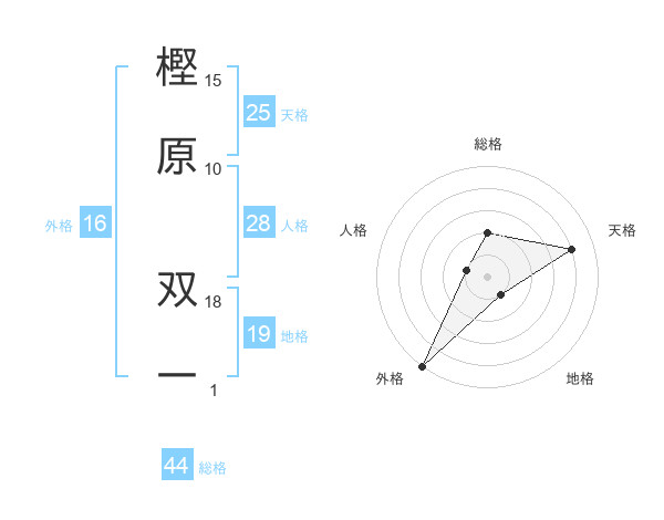 樫原 双一さんの天格は25画の4点!