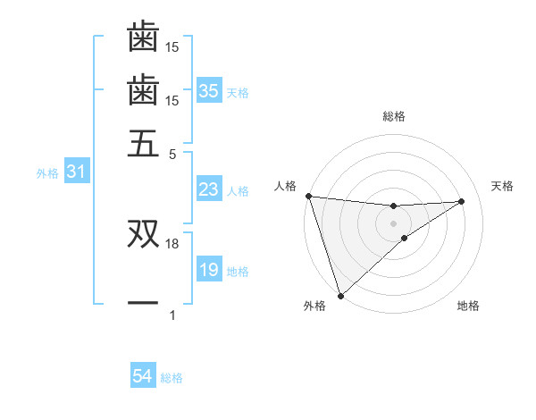 歯歯五 双一さんの外格は31画の5点!