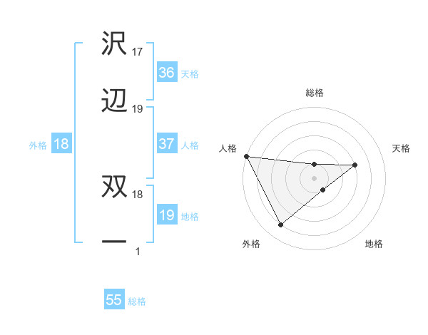 沢辺 双一さんを姓名の画数から五運を鑑定