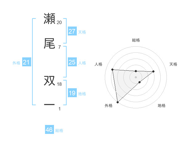 瀬尾 双一さんを姓名の画数から五運を鑑定