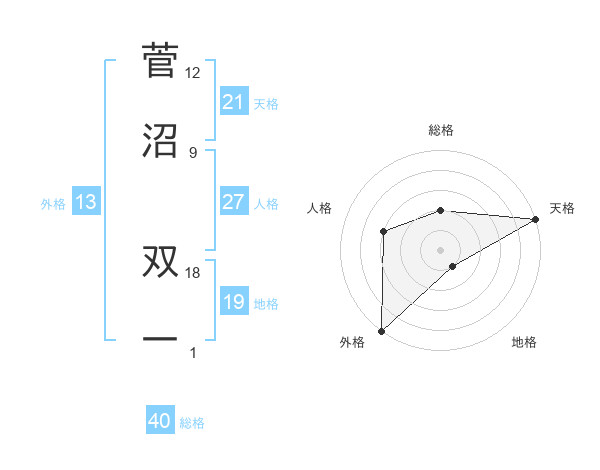 菅沼 双一さんを姓名の画数から五運を鑑定