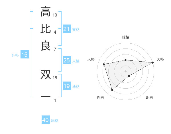 高比良 双一さんの天格は21画の5点!
