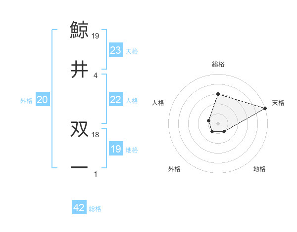 鯨井 双一さんの天格は23画の5点!