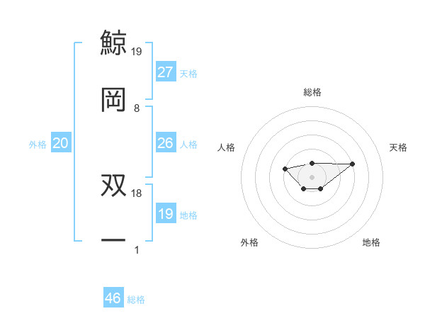 鯨岡 双一さんの総格は46画の1点!