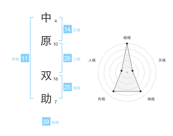 中原 双助さんの総格は39画の5点!