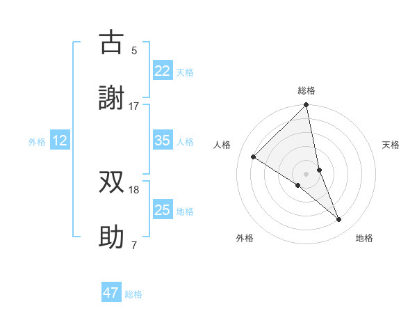 古謝 双助さんの総格は47画の5点!
