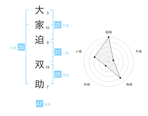 大家迫 双助さんを姓名の画数から五運を鑑定