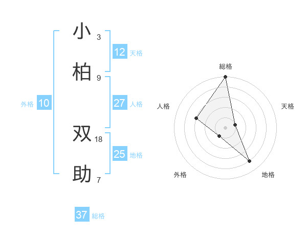 小柏 双助さんの総格は37画の5点!