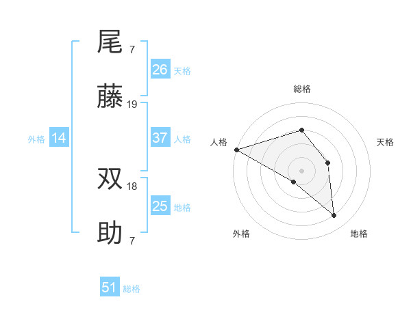 尾藤 双助さんを姓名の画数から五運を鑑定