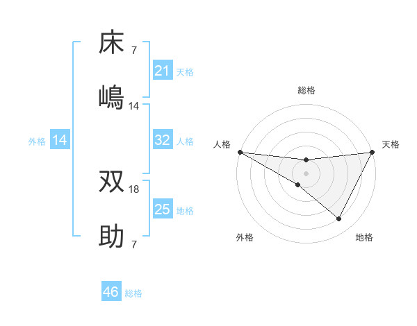 床嶋 双助さんを姓名の画数から五運を鑑定