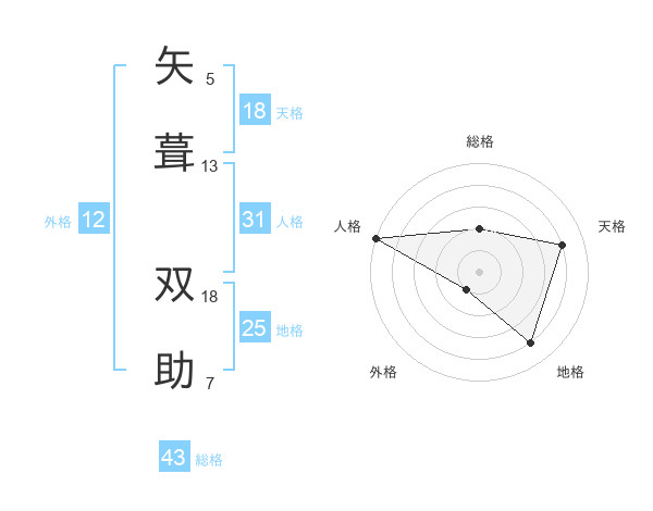 矢葺 双助さんを姓名の画数から五運を鑑定