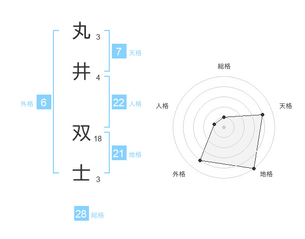 丸井 双士さんの総格は28画の1点!