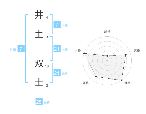 井土 双士さんの天格は7画の4点!