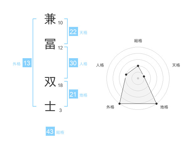 兼冨 双士さんの総格は43画の2点!