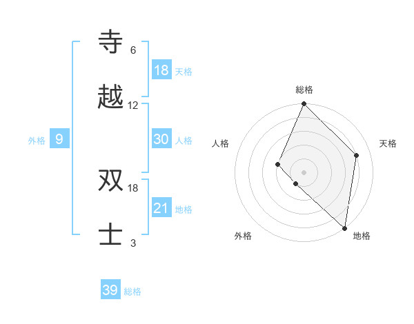 寺越 双士さんの総格は39画の5点