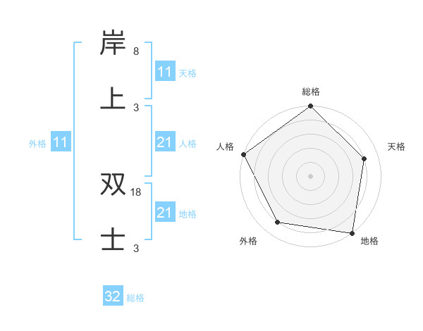 岸上 双士さんの総格は32画の5点!