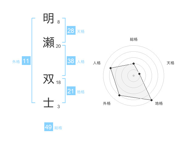 明瀬 双士さんを姓名の画数から五運を鑑定