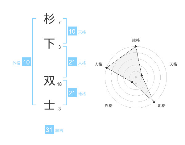 杉下 双士さんの人格は21画の5点!