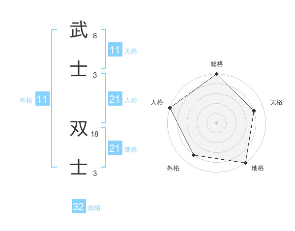 武士 双士さんの総格は32画の5点!