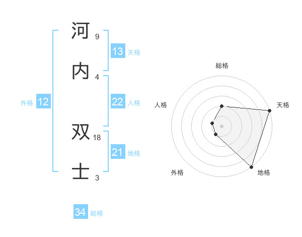 河内 双士さんの天格は13画の5点!