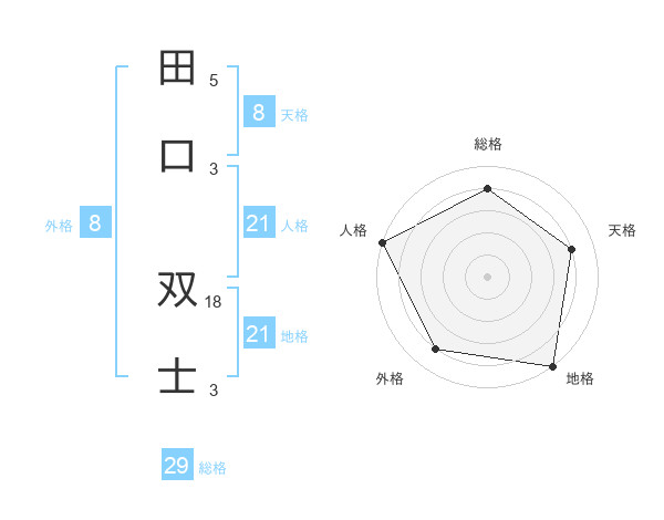 田口 双士さんの総格は29画の4点!