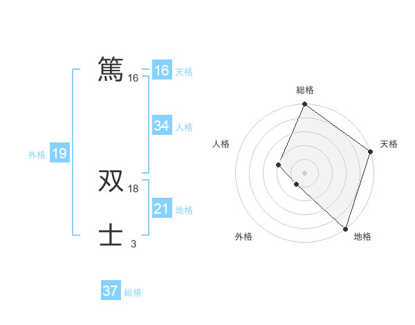 篤 双士さんの総格は37画の5点!