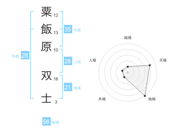 粟飯原 双士さんを姓名の画数から五運を鑑定