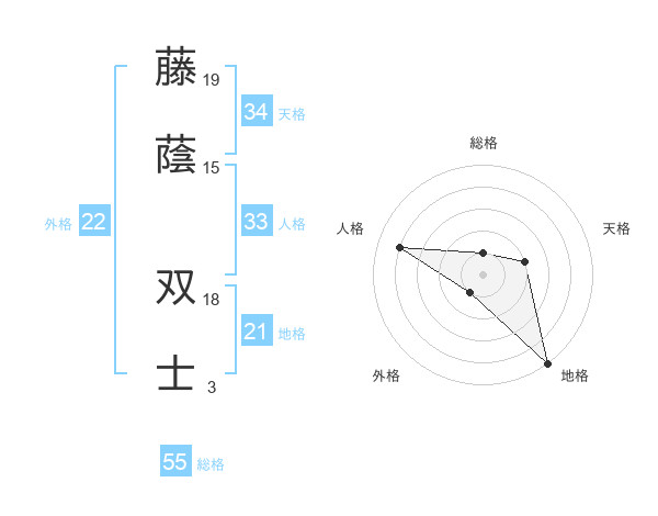 藤蔭 双士さんの総格は55画の1点!