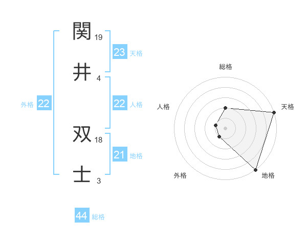 関井 双士さんの総格は44画の2点!