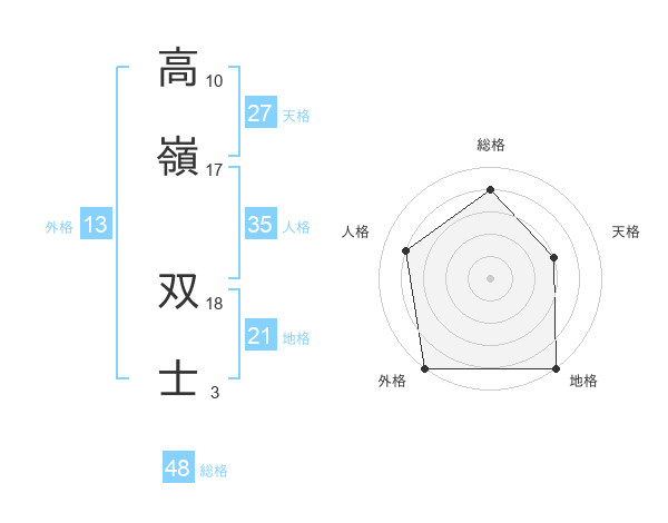高嶺 双士さんの外格は13画の5点!