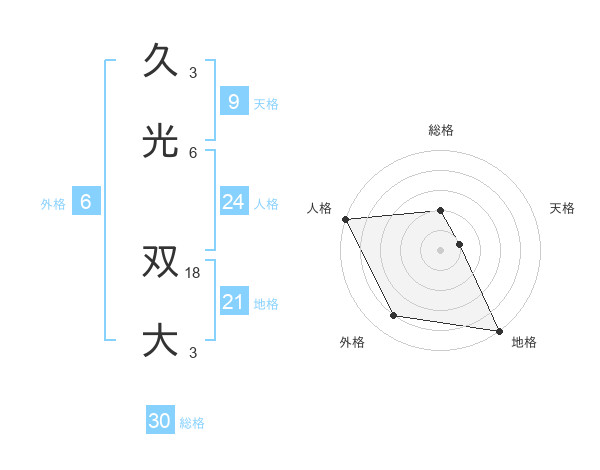 久光 双大さんの総格は30画の2点!