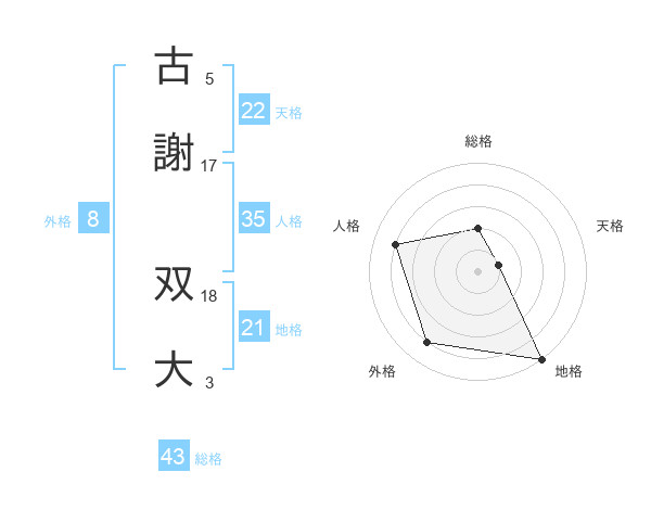 古謝 双大さんの地格は21画の5点!