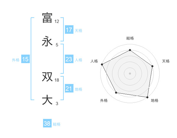 富永 双大さんの総格は38画の4点!